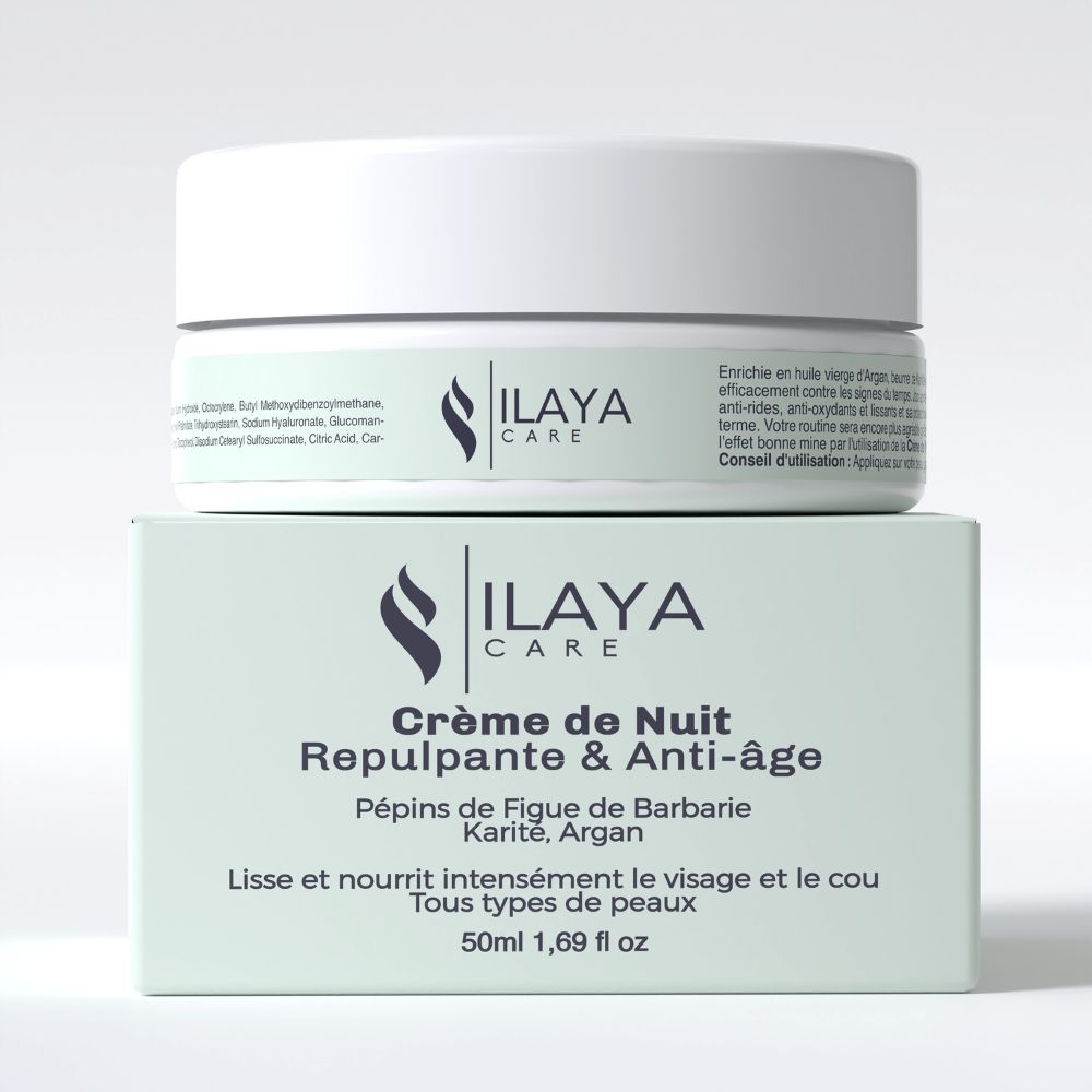Enrichie en huile vierge de Pépins de Figue de Barbarie, la Crème de Nuit de Ilaya Care assure une puissante action anti-oxydante et une hydratation en profondeur. Grâce à son pouvoir anti-âge incontestable, elle protège les cellules de l’oxydation afin qu’elles préservent leur jeunesse. Votre teint est illuminé et votre peau repulpée.